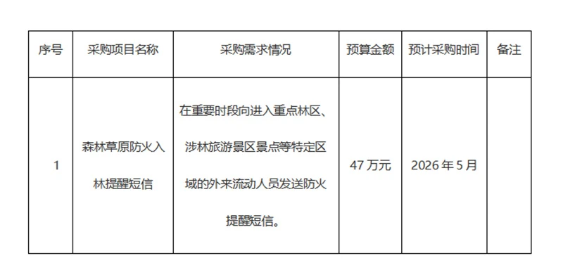 云南省林业和草原局2026年4月—2026年5月采购意向