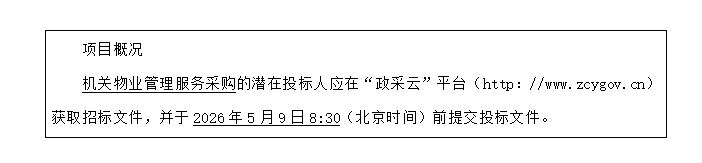 1.投标截止时间及开标时间:2026年5月9日8:30(北京时间)。