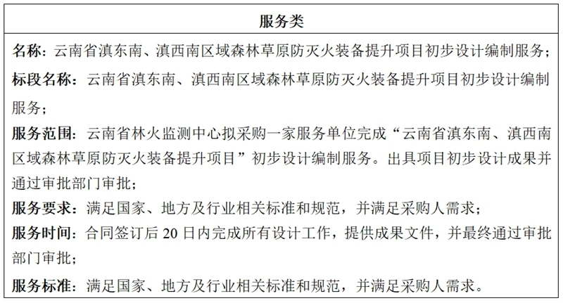 云南省滇东南、滇西南区域森林草原防灭火装备提升项目初步设计编制服务竞争性磋商成交结果公告